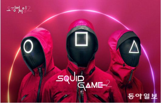 그런데 원방각의 ‘O △ □’는 어디서 많이 본 듯하지 않습니까? 동그라미, 세모, 네모…. 넷플릭스 드라마 ‘오징어 게임’에서 경비병들의 얼굴 가면 위에 쓰여진 표시입니다. ‘오징어 게임’에서 한글의 창제원리 중 하나인 ‘천지인 원방각’의 표시가 있는 것도 의미심장하네요.