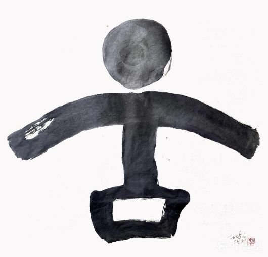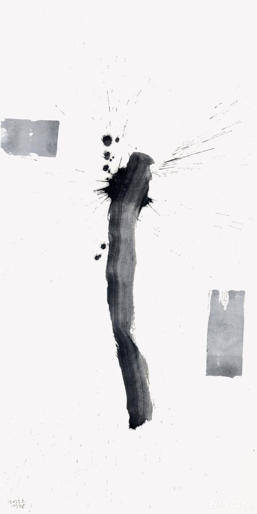 ‘문장의 시냇물(글내)’이라는 뜻의 ‘장천(章川)’이라는 호처럼 아름다운 글귀를 써온 그의 작품에서 문장이 사라졌습니다. 대신 글씨 하나하나가 문자조형 예술작품이 됐습니다. 글씨인지, 그림인지 알 수 없는 작품이지만, 여전히 살아 꿈틀거리는 서체의 힘에 한없이 빨려들어가게 됩니다.