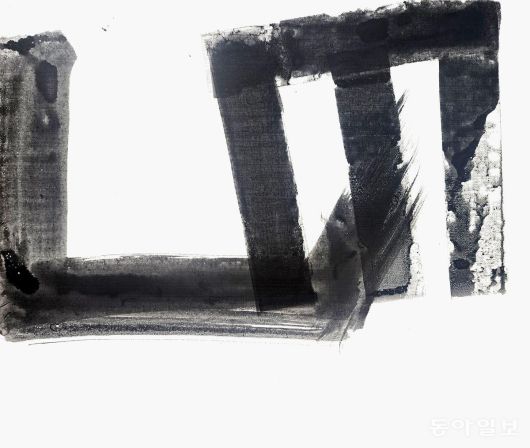 ‘나랏말글씨’ 전시회에서 또하나의 감상할 만한 부분은 바로 먹색입니다. 탁한 먹색이 없습니다. ‘먹=검정색’이라고 알고 있는 고정관념을 깹니다. 맑은 담묵(淡墨), 짙은 농묵(濃墨), 갈아서 하룻밤을 묵힌 ‘숙묵(宿墨)’까지…. 다양한 발묵(潑墨)을 보여줍니다. 김 작가는 “진정한 검정은 검정 속에 있는 하얀색을 찾아내는 것”이라고 말합니다.