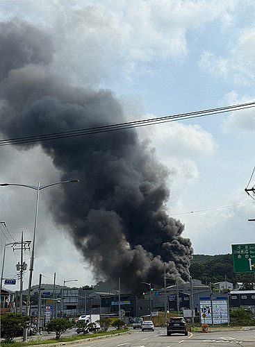 이날 오전 9시 21분께 발생한 화재로 인명피해는 없었으나 건물 2개 동이 불에 타고, 업체에서 보관 중인 폐비닐 200톤 중 50톤이 훼손됐다. 2025.7.6 [독자 제공. 재판매 및 DB 금지]