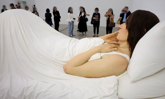 지난 5월20일 서울 종로구 국립현대미술관 서울관을 찾은 관람객이 론 뮤익의 작품 ‘침대에서’를 감상하고 있다. 연합뉴스 |
