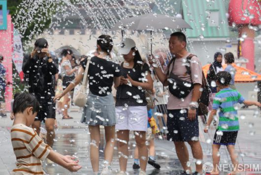 [서울=뉴스핌] 양윤모 기자 = 휴일을 맞아 서울의 기온이 33도까지 올라간 6일 오후 광화문광장 분수터널을 찾은 시민들이 무더위를 식히고 있다. 2025.07.06 yym58@newspim.com |