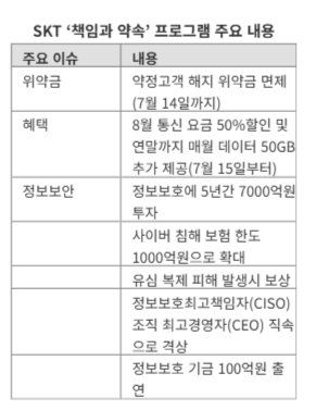 SK텔레콤은 지난 4일 보상안을 발표하면서 책임(위약금 면제)과 집토끼 잡기(매월 연말까지 데이터 50GB 제공) 전략을 모두 적용했다. 위약금 면제 대상은 해킹 사고가 발생한 지난 4월 18일 24시 기준 약정 고객 중 이미 해지했거나 오는 14일까지 해지 예정인 고객이다. 15일부터는 SK텔레콤 알뜰폰을 포함한 고객 2400만명에게 5000억원 규모의 고객감사패키지 혜택을 제공한다. 8월 통신요금 50% 할인 및 연말까지 매월 데이터 50기가바이트(GB)를 별도 신청 없이 자동 제공한다. 정보유출 사태 후 해지 고객이 해지일로부터 6개월 내 재가입 할 경우에는 가입 연수, 멤버십 등급을 원상복구해 제공한다. 다만 위약금 면제 등으로 인한 재무 부담은 쉽지 않은 상황이다. 업계 관계자는 "SK텔레콤이 지난 5월 5일부터 6월 23일까지 51일간 신규 영업을 중단한 만큼 마케팅 예산을 비축했을 것으로 보이지만, 위약금 면제 등에 따른 막대한 손실이 보조금 지원 규모의 변수"라고 말했다. mkchang@fnnews.com 장민권 기자