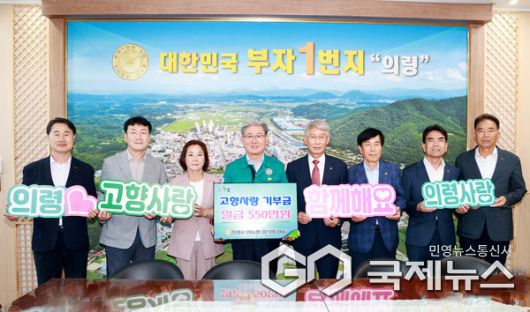 (의령=국제뉴스) 황재윤 기자 = 의령군은 창원시 NH농협 지역 임직원 4명이 지난 3일 의령군청을 방문해 창원시 농협 임직원들이 모금한 고향사랑기부금 550만 원을 전달했다고 밝혔다.