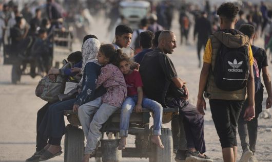 지나달 9일 팔레스타인 가자시 해안을 따라 피난 가고 있는 팔레스타인인들 모습. AP연합뉴스 |