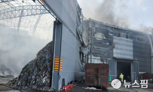 소방당국 등에 따르면 이날 화재는 샌드위치패널로 된 단층 구조의 자원순환시설 4동(연면적 792㎡) 및 가설건축물 6동(3,521㎡) 중 폐비닐 200톤을 보관 중이던 창고 2개동에서 발생했다. 당시 작업 인원은 없어 인명 피해는 발생하지 않았다.