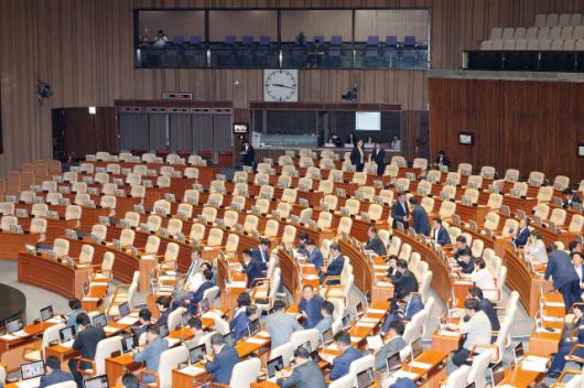 4일 국회 본회의에서 여당 의원들이 야당 의원들을 기다리고 있다. [사진=연합뉴스] |