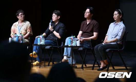 감독 류승완, 배우 조인성, 외유내강 강혜정 대표가 행사에 참석해 질문을 듣고 있다. 2025.07.06 /cej@osen.co.kr