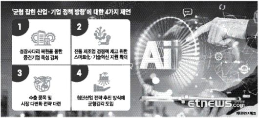 그렇다면 첨단산업 육성과 제조업 전반의 경쟁력 강화를 어떻게 동시에 달성할 수 있을까? 균형 잡힌 산업·기업 정책 방향으로 다음의 제언을 하고자 한다.