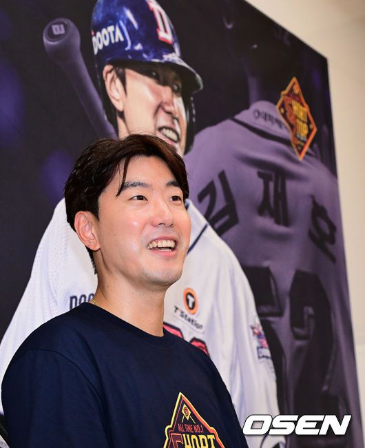 경기에 앞서 김재호가 기자회견을 하고 있다. 2025.07.05 /jpnews@osen.co.kr