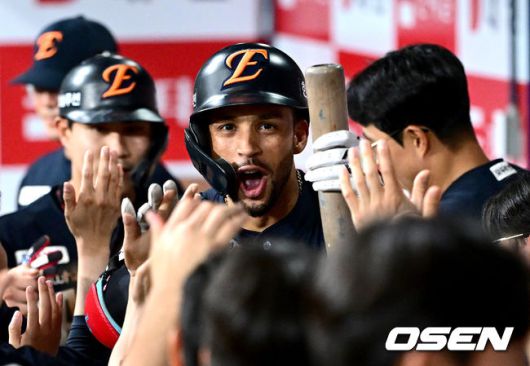 7회초 1사 1, 2루 상황 한화 리베라토가 달아나는 우월 스리런포를 날리고 홈을 밟은 뒤 더그아웃 동료들과 환호하고 있다. 2025.07.06 / dreamer@osen.co.kr