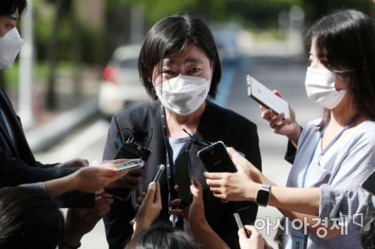 임은정 법무부 감찰담당관이 8일 윤석열 전 검찰총장의 한명숙 전 국무총리 모해위증교사 수사 방해 의혹과 관련해 참고인 신분으로 조사를 받기 위해 정부과천청사 공수처로 향하고 있다. /문호남 기자 munonam@ |