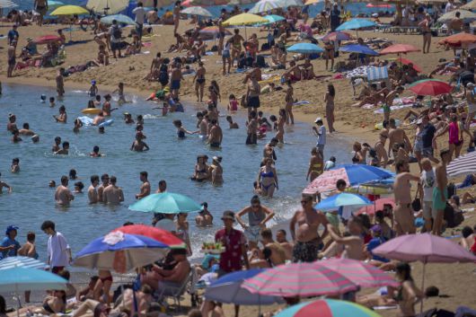 지난 6월 28일 스페인 바르셀로나에 폭염이 강타한 가운데 시민들이 물에 들어가 더위를 식히고 있다.[AP] |