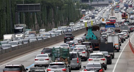 경부고속도로 서울 잠원IC 구간 차량들이 늘어서 있다. 뉴시스 |