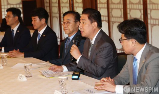[서울=뉴스핌] 양윤모 기자 = 6일 서울 삼총동 총리공관에서 열린 제1차 고위당정협의회에서 김병기 더불머민주당 대표 직무대행 겸 원내대표가 발언하고 있다. [공동취재] 2025.07.06 yym58@newspim.com