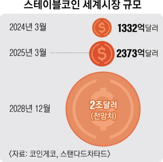 또 은행에 돈을 맡기는 것이 신뢰에 기반하듯이 원화 스테이블코인 발행도 준비자산 확보가 필수다. 달러 스테이블 코인처럼 발행을 담보할 수 있는 단기국채나 현금 등 준비자산을 확보해야 하는데 여신기능이 없는 비은행이 원화 스테이블코인을 발행했다가 준비자산 관리에 실패하면 ‘코인런’이 발생해 채권시장을 붕괴시킬 수 있다.