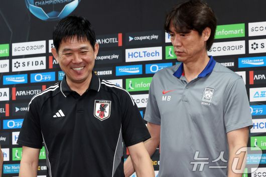 (용인=뉴스1) 안영준 기자 = 홍명보 한국축구대표팀 감독과 모리야스 하지메 일본축구대표팀 감독이 2025 동아시아축구연맹(EAFF) E1 챔피언십(동아시안컵) 기자회견에서 서로를 "라이벌이자 자극제"라고 밝혔다.