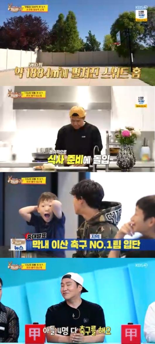 송정훈은 아이들에게 막내가 축구 지역 넘버 원 팀에 입단한 소식을 알려줬다. 송정훈은 아들 4명이 다 축구를 하는 상황이라고 했다.