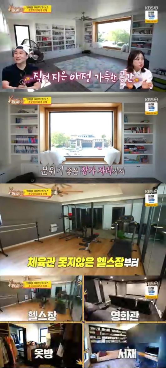 송정훈의 집은 주방에서 한 층 내려가면 체육관 못지않은 헬스장부터 영화관, 옷방, 서재까지 완비된 상태로 무려 570평에 달하는 스위트 홈이었다.