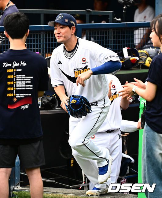 김재호가 그라운드로 나서고 있다. 2025.07.05 /jpnews@osen.co.kr