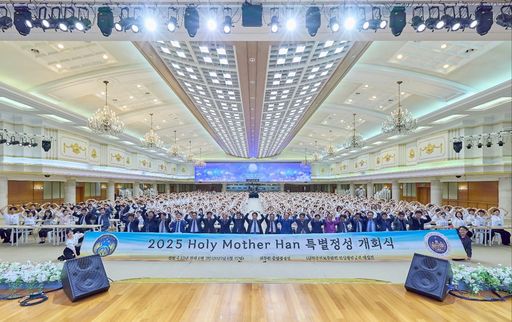 지난달 27일 경기 가평군 설악면 HJ천주천보수련원에서 열린 ‘2025 홀리 마더 한 특별정성 개회식’에서 전 세계 청년 참가자들이 기념촬영을 하고 있다. 세계평화통일가정연합 제공 |