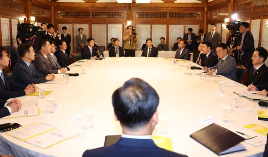 6일 오후 서울 종로구 삼청동 국무총리 공관에서 이재명 정부 첫 고위당정협의회에가 열리고 있다. 김성룡 기자 |