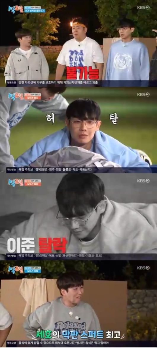 6일 방송된 KBS 2TV '1박 2일 시즌4'에서는 문세윤, 조세호, 이준, 딘딘, 유선호의 비박 여행기가 전파를 탔다.