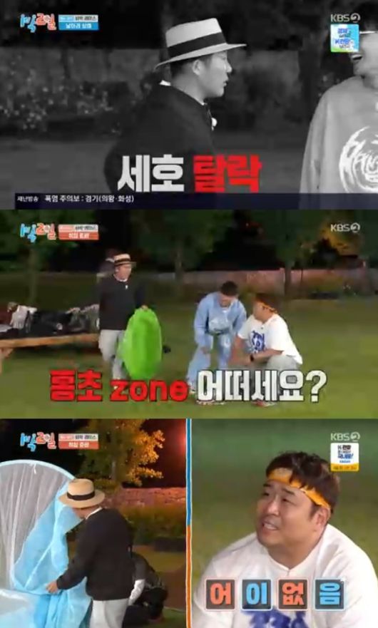 이준과 조세호는 비박템이 많은 문세윤에게 뭐라도 얻기 위해 직접 모기장을 쳐줬다.