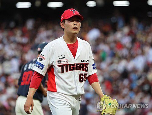(광주=연합뉴스) 조남수 기자 = 6일 광주기아챔피언스필드에서 열린 프로야구 롯데 자이언츠와 KIA 타이거즈의 경기. KIA 성영탁이 4회초 투구를 마치고 더그아웃으로 향하고 있다. 2025.7.6