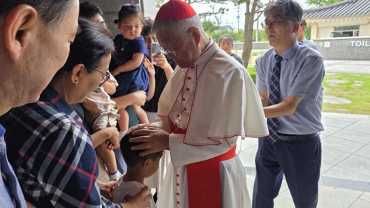 [서산=뉴시스] 유흥식 라자로 추기경이 6일 충남 서산해미국제성지를 방문해 한 아이의 머리에 두 손을 얹어 축복하고 있다. (사진=독자 제공) 2025.07.06. photo@newsis.com *재판매 및 DB 금지 |