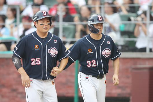 화룡점정을 일군 건 김재환이다. 양의지 후속으로 타석에 들어선 뒤 무사 1, 2루에서 우측 담장을 넘겼다. 주권에 맞서 시속 144㎞ 싱커를 쳐 시즌 8호포를 쏘아 올렸다. 양의지는 4타수 2안타 1득점 1홈런 2타점을, 김재환은 3타수 1안타 1득점 1홈런 3타점을 기록했다.