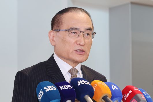 위성락 국가안보실장이 방미 일정을 위해 6일 인천국제공항을 통해 미국 워싱턴DC로 출국하기 앞서 취재진의 질문에 답하고 있다. 위 실장은 오는 8일까지 사흘간 미국 정부 고위급 인사들과 상호관세 유예기간, 한미 정상회담 등 양국 간 현안을 논의할 것으로 전망된다. [연합]
