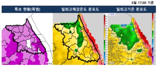 이번 극심한 더위는 일본 남쪽 해상 고기압의 가장자리를 따라 서풍이 유입되면서 발생했다. 특히 산맥을 넘어 동쪽으로 이동하는 뜨거운 바람이 가열돼 동해안을 중심으로 일최고기온 신기록을 경신했다. 북강릉은 기존 최고치인 37.1도를 넘어선 37.9도를 기록했고 동해시 역시 종전 극값인 37.3도를 뛰어넘어 올해 들어 가장 높은 기온인 38.3도를 보였다.