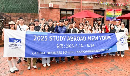 미국 뉴욕을 방문한 순천향대 글로벌경영대학 학생들이 단체로 기념하고 있다. |