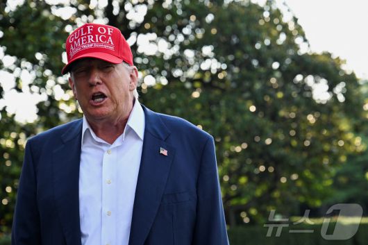 도널드 트럼프 미국 대통령이 1일(현지시간) 미국 워싱턴DC 백악관 남쪽 잔디밭에서 플로리다로 출발하기 위해 대통령 전용헬기 '마린원'에 탑승하기 전 취재진 질문에 답하고 있다. 2025.07.01 ⓒ 로이터=뉴스1 ⓒ News1 류정민 특파원 |