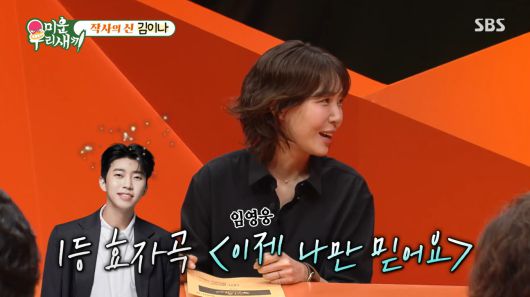 6일 오후 방송된 SBS 예능 프로그램 '미운 우리 새끼'에는 작사가 김이나가 출연해 재미를 더했다.