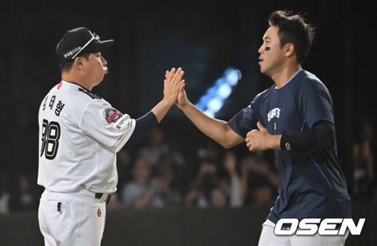 김태형 감독은 "선발 데이비슨이 5.2이닝을 2실점으로 잘 끌어줬다. 이어 나온 불펜진도 무실점으로 잘 막아줘 승리를 지킬 수 있었다"며 마운드에 박수를 보냈다.