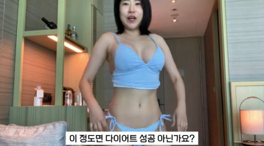 이어 "어제 사실은 비키니 촬영 풀파티 촬영 그걸로 부산에있는 시그니엘 왔다. 내가 이날으 위해서 얼마나 열심히 운동하고 다이어트를 했는가. 열심히 운동한 저의 바디를 공개하겠다"며 "다이어트는 과연 성공했을것인가? 너무 성공했다. 옆에 흔들리거나 블랙홀로 빠져들어가는거 없죠? 나 칭찬해"라고 만족감을 드러냈다.