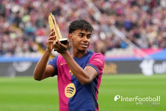 야말은 바르셀로나 최고의 재능으로 꼽힌다. 2022-23시즌 1군 무대에 데뷔해 지난 시즌 잠재력이 폭발했다. 50경기 7골 10도움을 기록하며 스페인 최고의 윙어로 거듭났다. 이번 시즌에도 활약이 대단했다. 55경기 18골 25도움을 몰아쳤다.