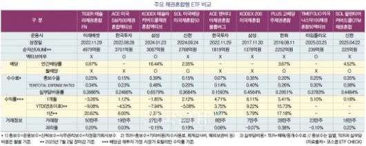 현재 수익률 상위 채권혼합형 ETF에서 저비용 상품으로는 한국투자신탁운용의 ‘ACE 엔비디아채권혼합블룸버그’ ETF가 꼽힌다. 이 상품은 총보수율이 0.07%, TER은 0.14%, 실부담비용률은 0.1593%로 낮은 수준이다.