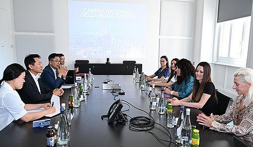 (서울=연합뉴스) 오세훈 서울시장이 4일(현지시간) '밀라노 패션위크'를 주최하는 이탈리아 국립패션협회(CNMI) 본부 책임 총괄자를 비롯한 관계자들을 만나 면담하고 있다. 2025.7.7 [서울시 제공. 재판매 및 DB 금지]