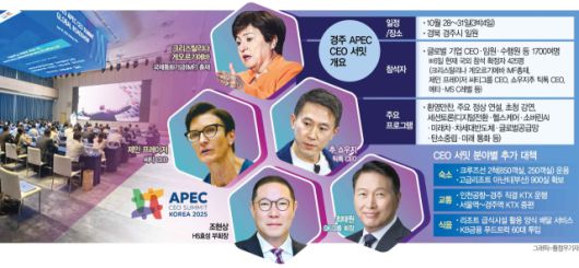 대한상의는 CEO급 700여 명을 포함해 임원과 수행원 등 1700여 명이 경주를 찾을 것으로 전망했지만 도널드 트럼프 미국 대통령과 시진핑 중국 국가주석 등 각국 정상이 APEC 정상회의 참석을 확정할 경우 참여 기업인은 급증할 수 있다. 이날까지 확정된 참석자 425명 가운데 공개된 CEO급은 제인 프레이저 씨티그룹 CEO와 쇼우지 추 틱톡 CEO 등이고 메타나 마이크로소프트(MS)의 경우 고위 임원이 등록했다. 그러나 주요국 정상들의 일정이 확정되면 순다르 피차이 구글 CEO와 팀 쿡 애플 CEO, 마크 저커버그 메타 CEO, 젠슨 황 엔비디아 CEO 등 빅테크 기업 수장이 대거 몰려들 가능성도 적지 않다. 공식 세션과 별개로 기업인과 각국 정상 간 무수한 만남이 이뤄질 수 있기 때문이다.
