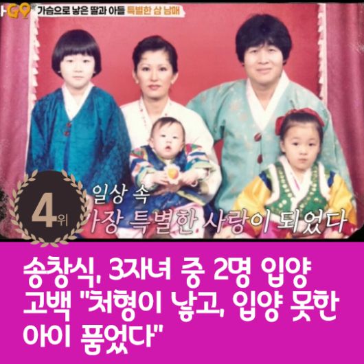 4위 : 송창식, 3자녀 중 2명 입양 고백 "처형이 낳고, 입양 못한 아이 품었다"