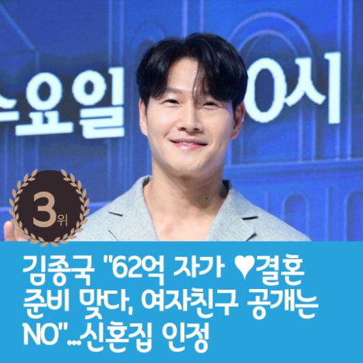 3위 : 김종국 "62억 자가 ♥결혼 준비 맞다, 여자친구 공개는 NO"...신혼집 인정