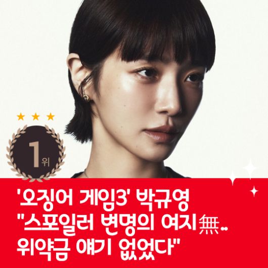 1위 : '오징어 게임3' 박규영 "스포일러 변명의 여지無..위약금 얘기 없었다"