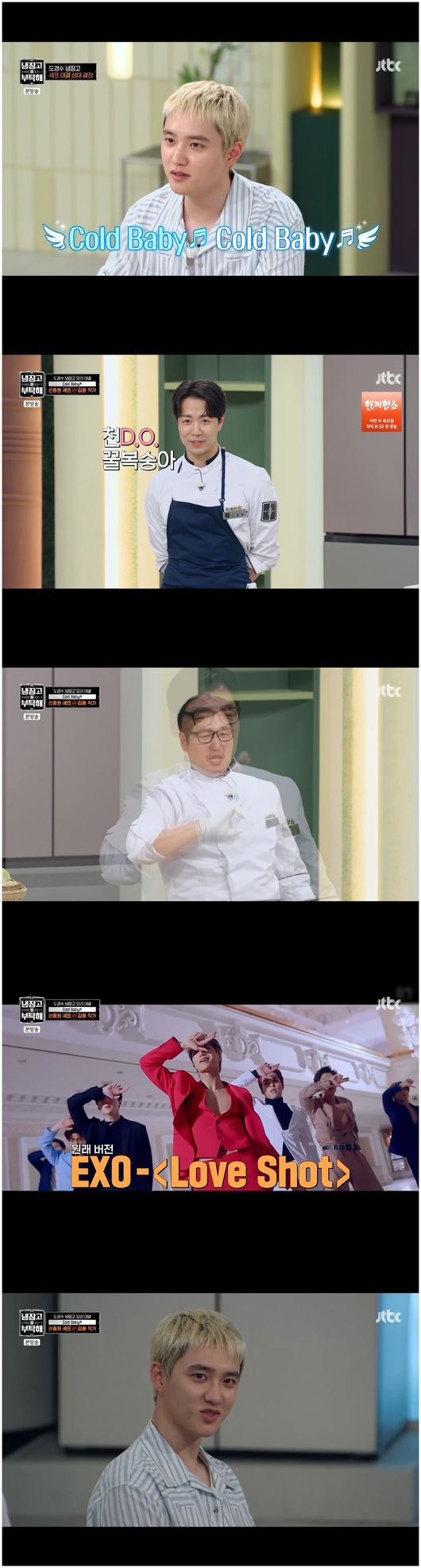도경수는 이날 출연한 이유도 덤덤하게 설명했다. 그는 “출연 이유는 첫 정규 앨범이 나온다. 살면서 이런 머리 색깔을 처음 해 봤다. 7월 7일, 여름을 겨냥한 곡이 나온다”라며 금발로 탈색한 머리를 공개했다. 허스키하면서도 단단한 저음이 나직하면서도 로맨틱하게 울리는 도경수의 음색은 데뷔 초부터 유명했고, 타고난 보컬은 스튜디오를 울렸고, 도경수는 셰프들의 요리 전 분위기를 한껏 올렸다.