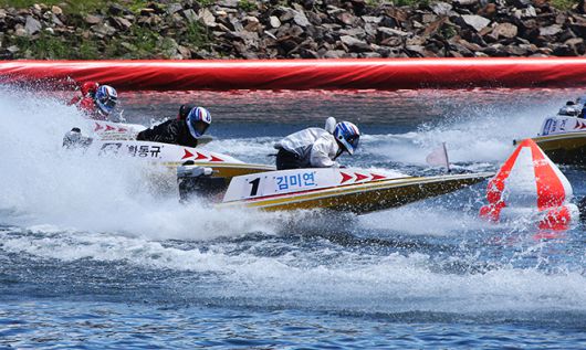 17기 김미연의 턴마크 선회 장면, 김미연은 이번 신예왕전에서 6코스로 출전할 전망이다. 사진=서울올림픽기념국민체육진흥공단 경륜경정총괄본부 |