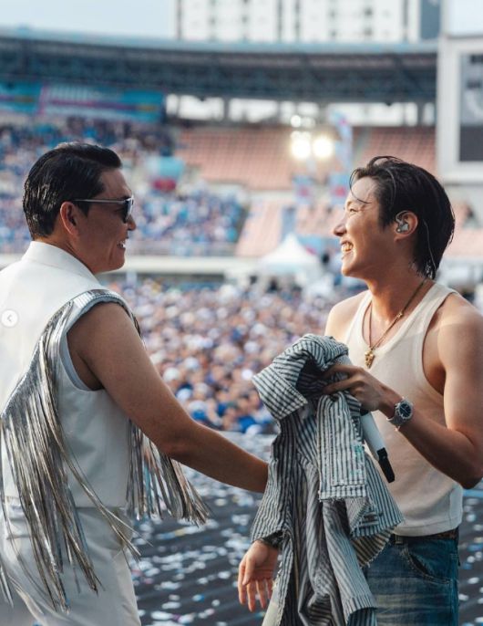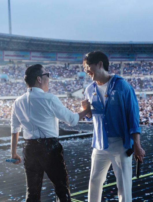 무대에서는 싸이와 방탄소년단(BTS) 멤버 제이홉이 신나는 표정으로 무대를 즐기며 관객들과 호흡했다.
