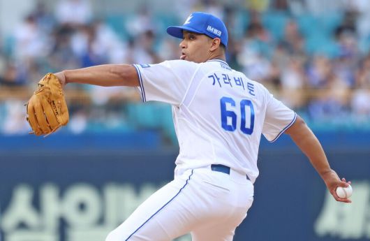 KBO리그 공식 구속 측정 플랫폼인 ‘트랙맨’의 집계에 따르면 두 경기에서 가라비토의 패스트볼 최고 구속은 시속 155.1㎞, 평균은 152㎞ 수준이었다. KBO리그에서 가라비토보다 패스트볼 평균 구속이 더 빠른 선발 투수는 드류 앤더슨(SSG), 코디 폰세(한화), 알렉 감보아(롯데)까지 단 세 명뿐이다. 릴리스포인트가 높지는 않지만 익스텐션이 길어 높은 쪽 코스에 레이저처럼 공이 꽂힌다. 익스텐션이 2m에 이른다. 타자들이 느끼는 체감 구속이 더 빠를 수밖에 없다.