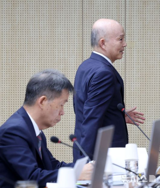 [서울=뉴시스] 홍효식 기자 = 안창호 국가인권위원회 위원장이 26일 서울 중구 국가인권위원회에서 열리는 제11차 전원위원회에 참석하고 있다. 왼쪽은 김용원 상임위원.이날 전원위원회에서는 세계국가인권기구연합(간리·GANHRI) 승인소위 특별심사 답변서 제출의 건을 의결한다. 2025.05.26. yesphoto@newsis.com |